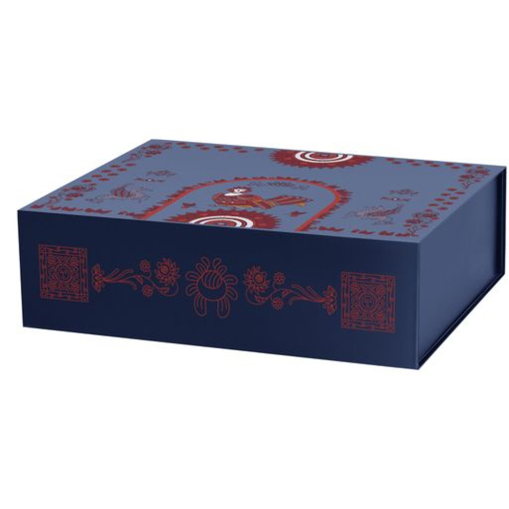 Изготовлена из жесткого переплетного картона. Матовая ламинация с покрытием «антицарапины» защищает от потертостей, сохраняя коробку безупречной даже при частом использовании, а индивидуальный пакет защищает от повреждений при транспортировке.