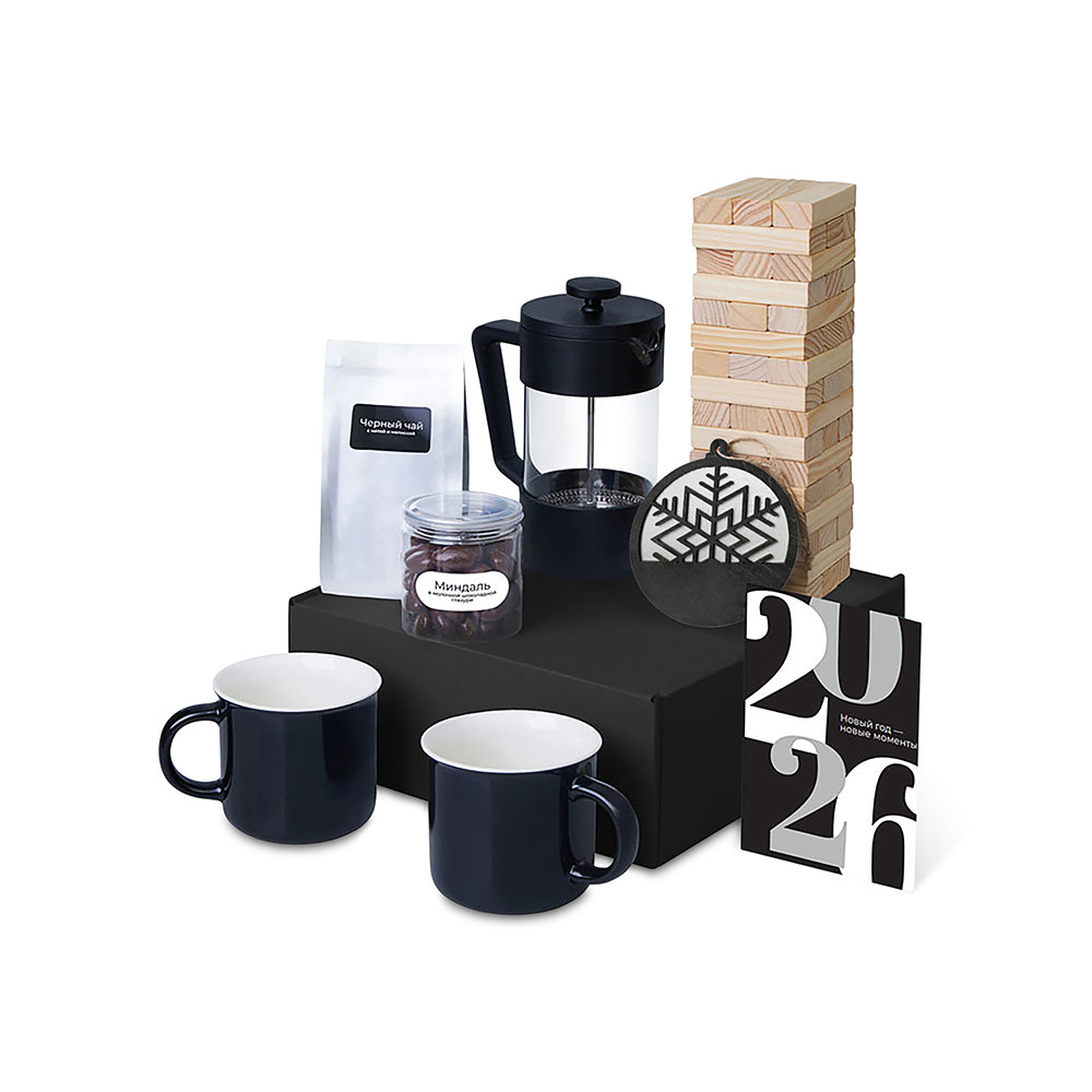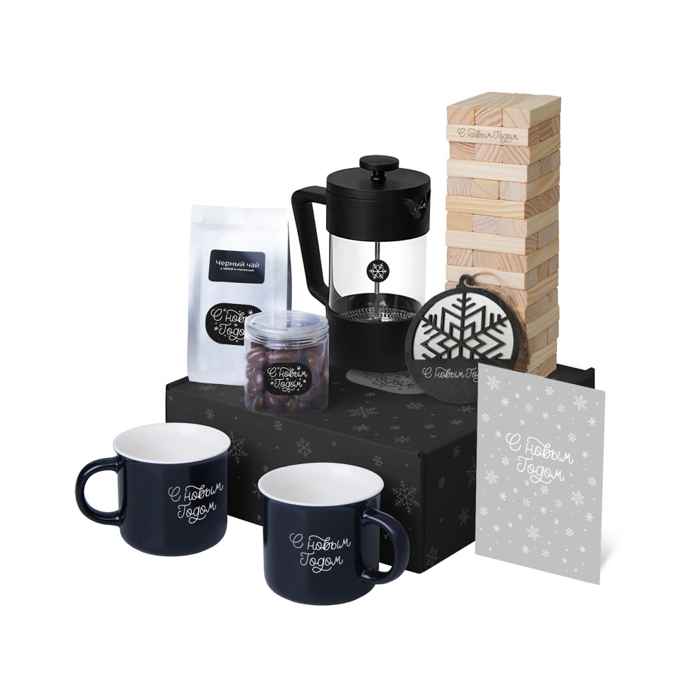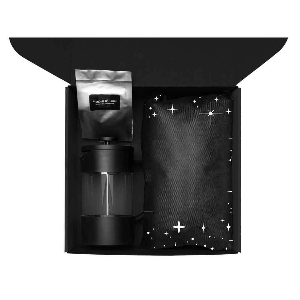 Подарочный набор c френчпрессом, кружками и чаем, черный