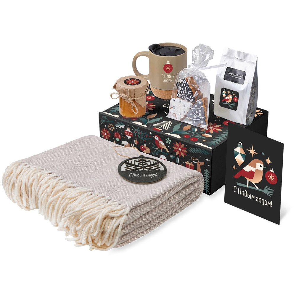 Подарочный набор c пледом, кружкой и вареньем, бежевый