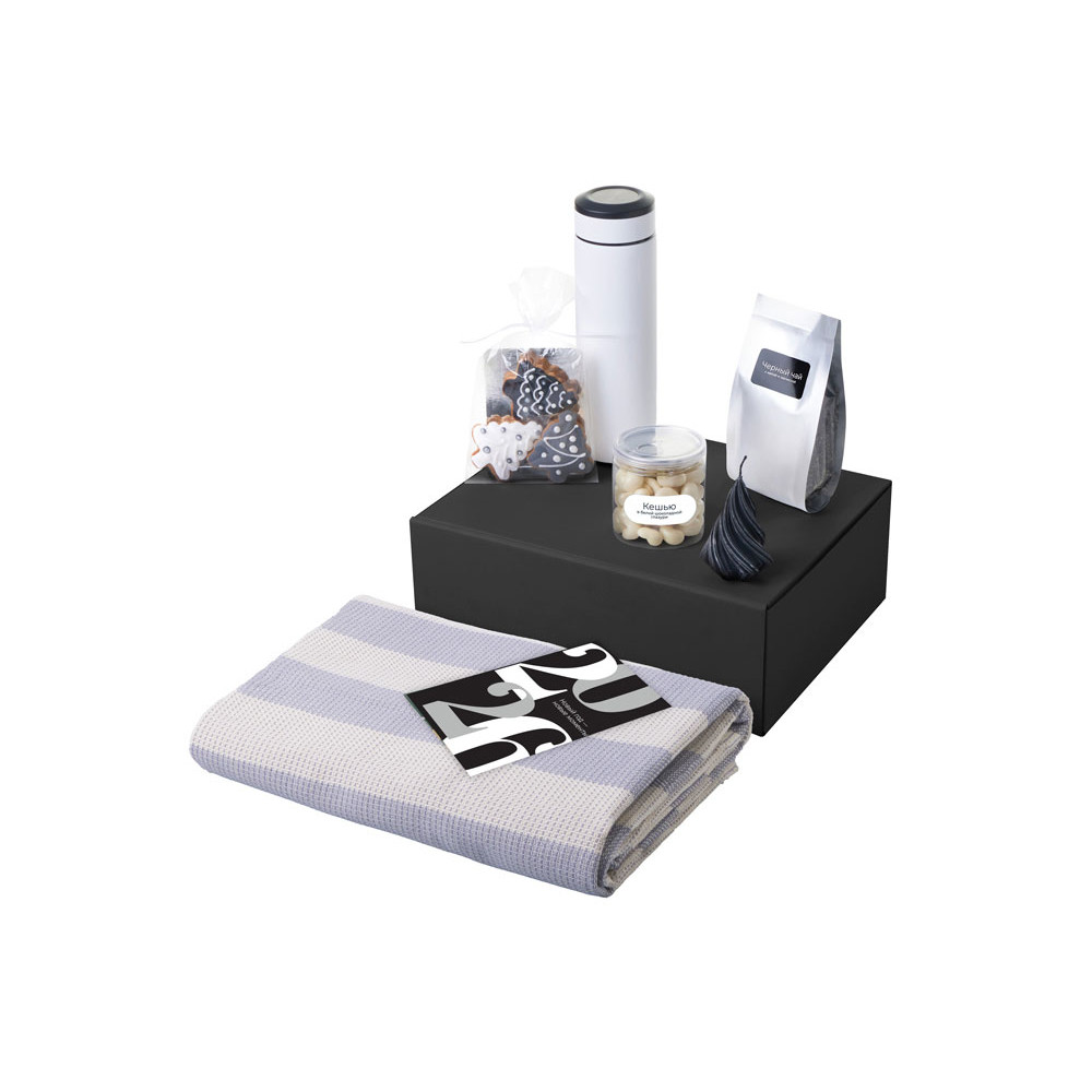 Подарочный набор c пледом, термосом, свечой и миндалем, белый