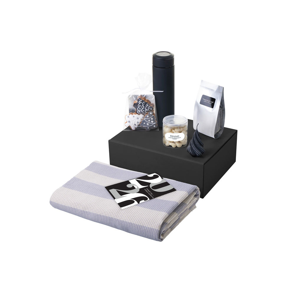 Подарочный набор c пледом, термосом, свечой и миндалем, черный