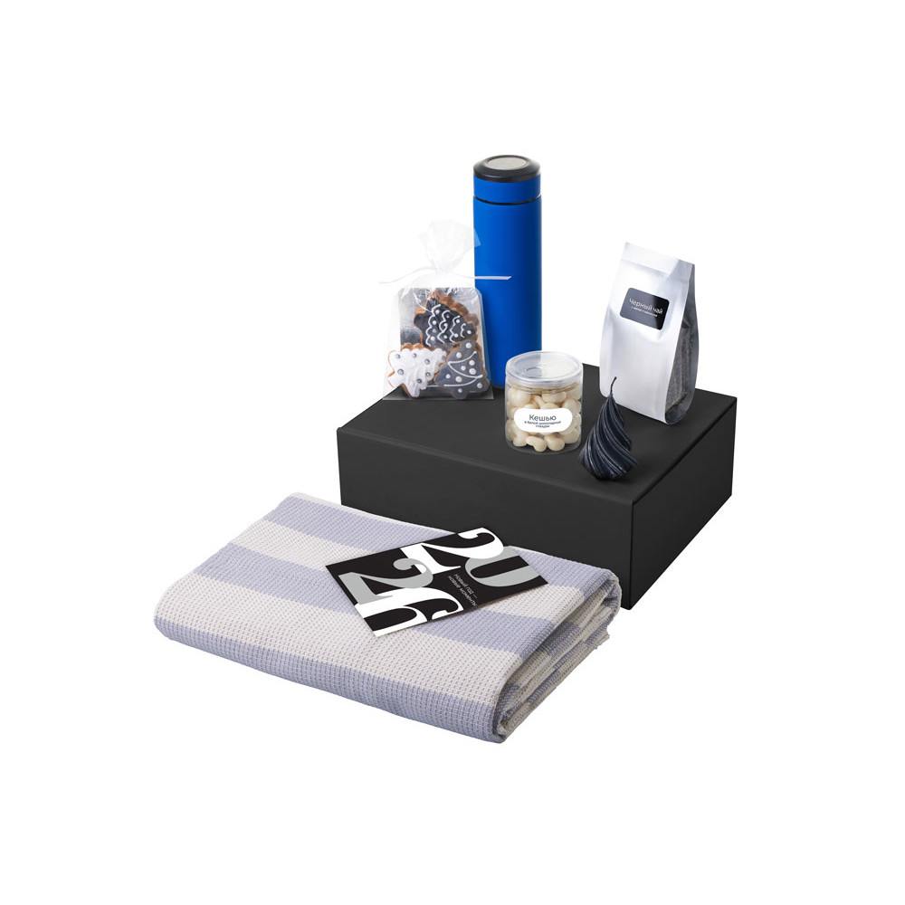 Подарочный набор c пледом, термосом, свечой и миндалем, синий
