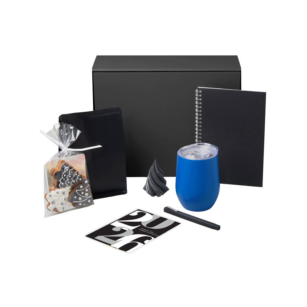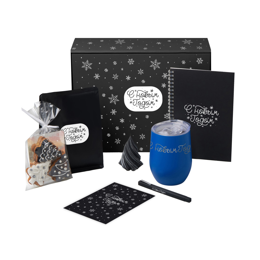 Подарочный набор c термокружкой, блокнотом, ручкой и свечкой, синий