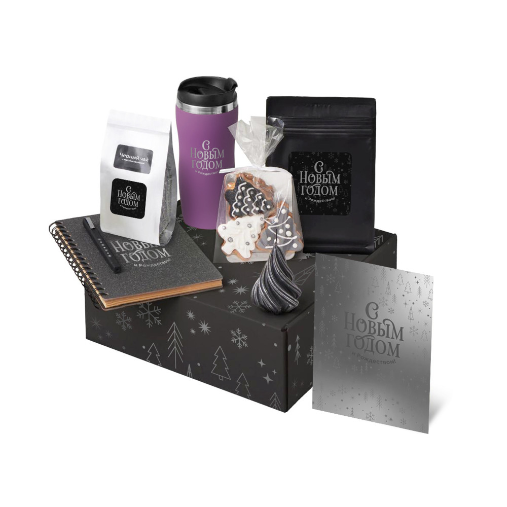 Подарочный набор c термокружкой, чаем, кофе и блокнотом, фиолетовый