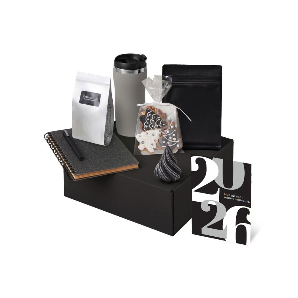 Подарочный набор c термокружкой, чаем, кофе и блокнотом, серый