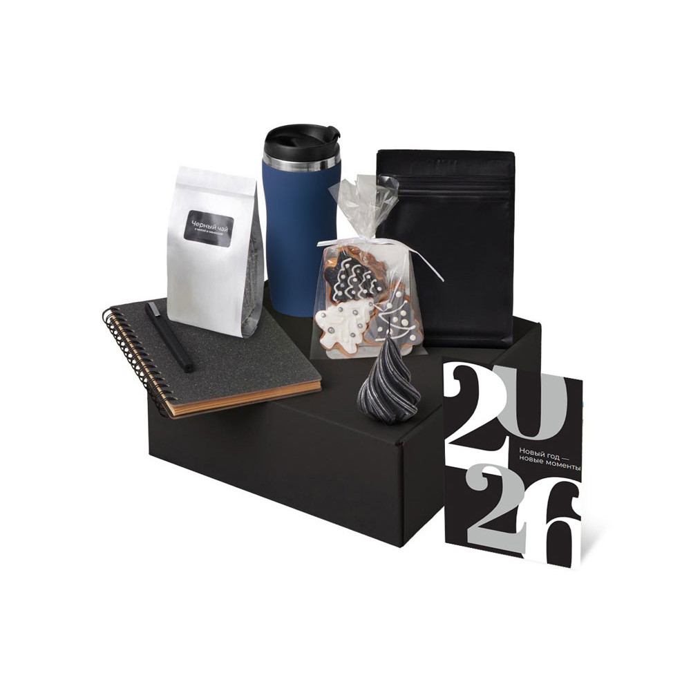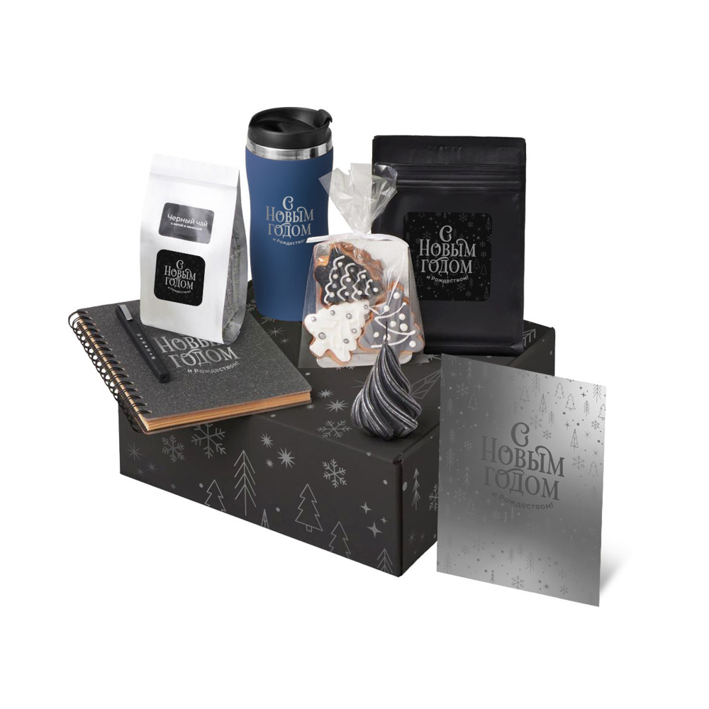 Подарочный набор c термокружкой, чаем, кофе и блокнотом, темно-синий