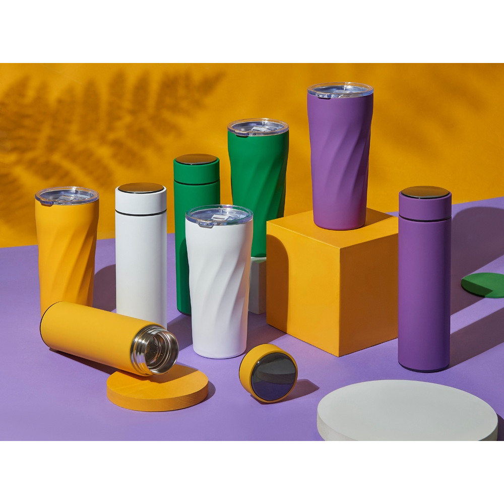Термокружка изготовлена из высококачественной нержавеющей стали с двойными стенками и вакуумной изоляцией, что обеспечивает длительное сохранение температуры напитка. Внутренняя часть выполнена из стали 304, внешняя — из 201. Кружка оснащена прозрачной крышкой, а ее поверхность покрыта приятным на ощупь soft-touch материалом.