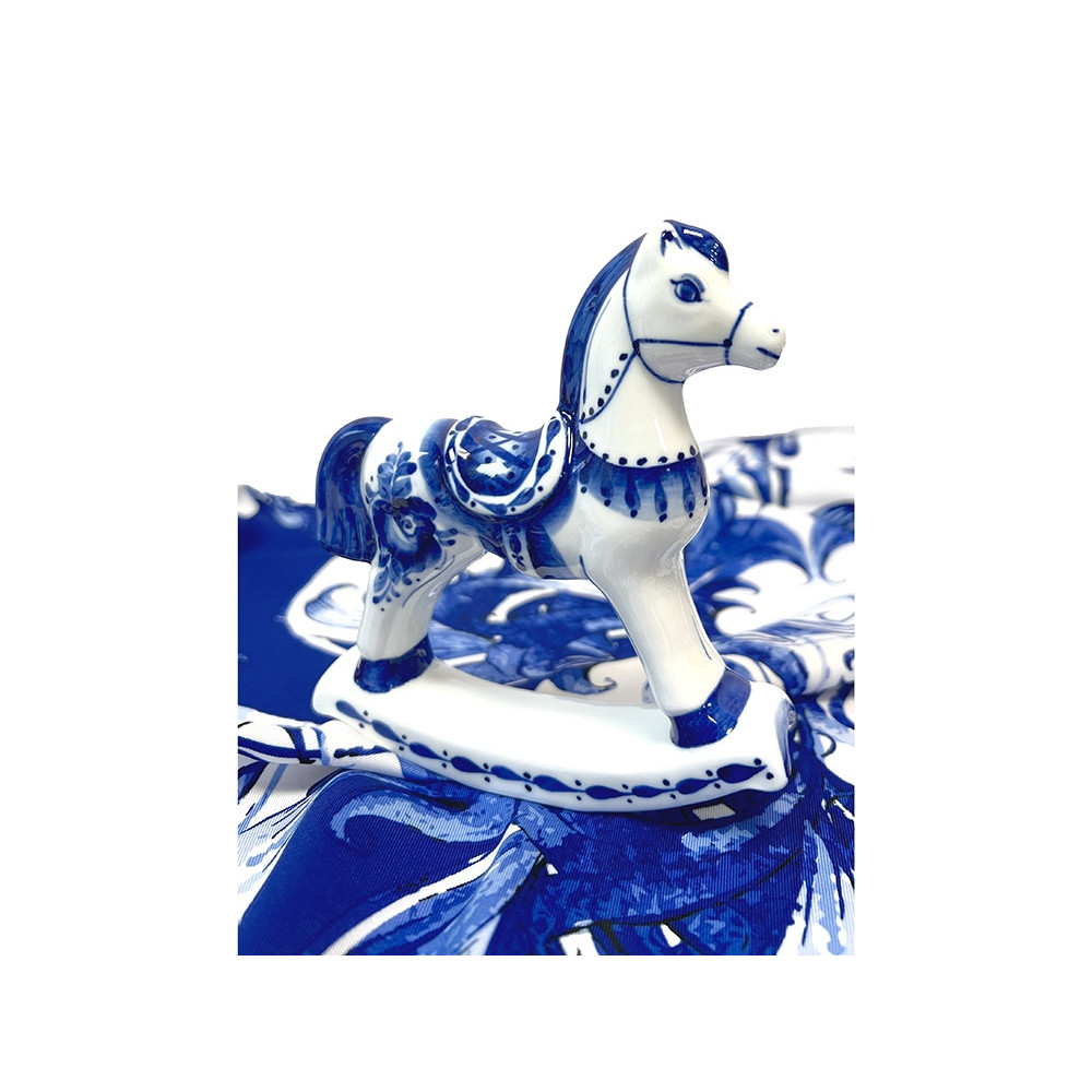 Статуэтка Лошадка-качалка создана Объединением Гжель — всемирно известной фабрикой фарфора, который отличается качеством, долговечностью и красотой. Изысканное изделия Лошадка-качалка напомнит о волшебном мире детства, домашнем уюте и радости каждого дня. Фигурка выполнена из фарфора с ручной сине-белой росписью и воплощает неповторимое искусство гжели.