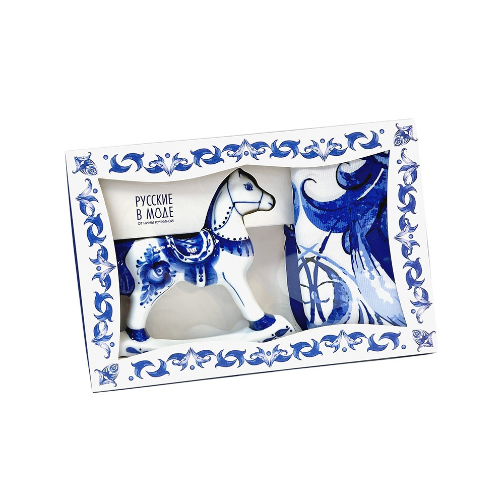 - Комплектность платок 90 х 90 см, статуэтка лошадка-качалка 12 х 13 х 3 см