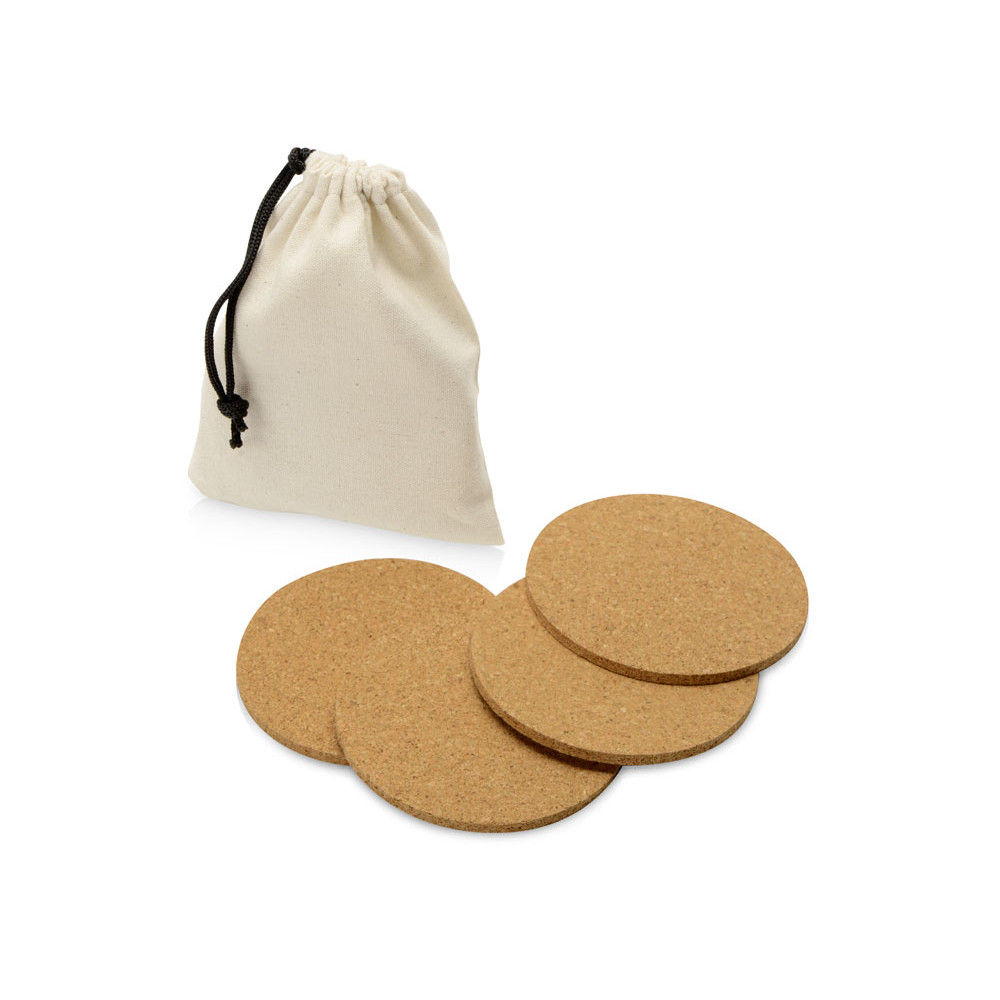Костеры из пробки подойдут для самой разной посуды: большой диаметр и универсальная форма делают его совместимым с бокалами, стаканами и кружками различных объемов. В набор входит 4 костера, упакованных в хлопковый мешочек на шнурке. И подставки, и упаковка набора выполнены из натуральных материалов;