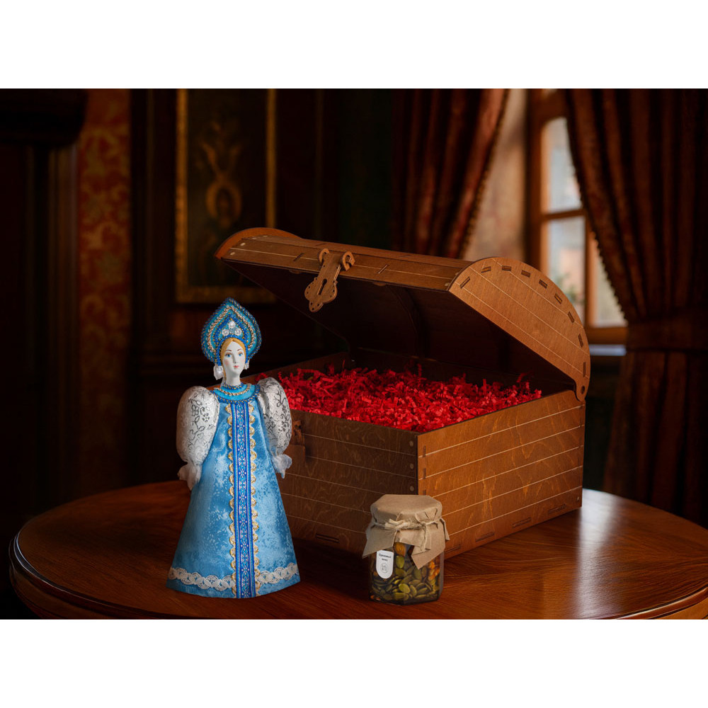Подарочный набор словно сошёл со страниц русской сказки: в нём гармонично переплелись изящество ручной работы и щедрость родной природы. Каждый элемент продуман до мелочей, чтобы создать неповторимую атмосферу тепла и исконно русского гостеприимства.