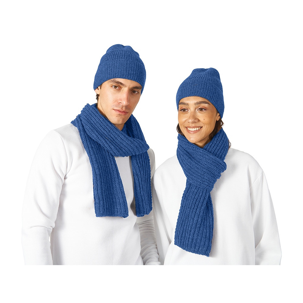 Шарф из такого же материала и с аналогичной вязкой рибом 1х1 легко драпируется, позволяя носить его как свободно, так и плотно укутываясь — в зависимости от погоды и настроения.