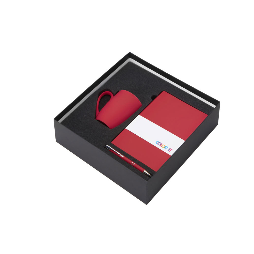 Подарочный набор с блокнотом С1, металлической ручкой и кружкой, красный