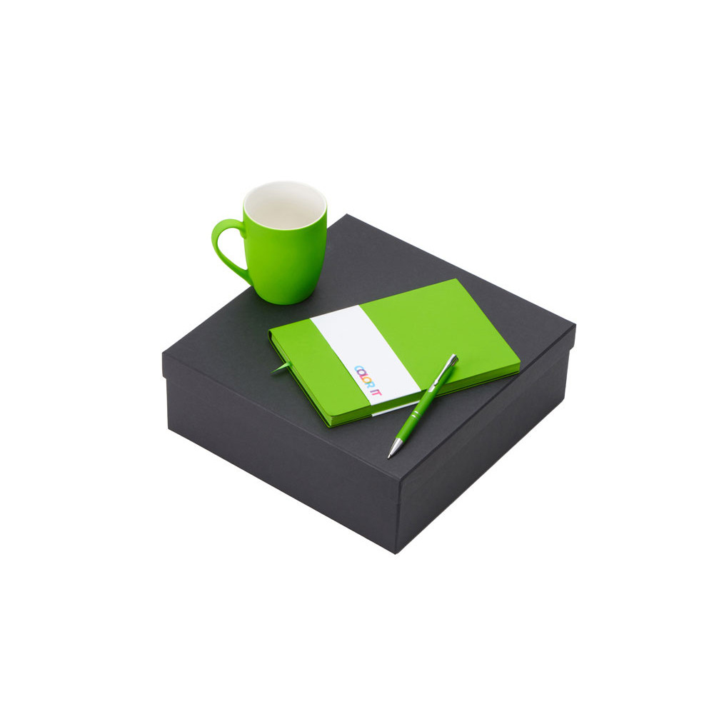 Подарочный набор с блокнотом С1, металлической ручкой и кружкой, зеленое яблоко