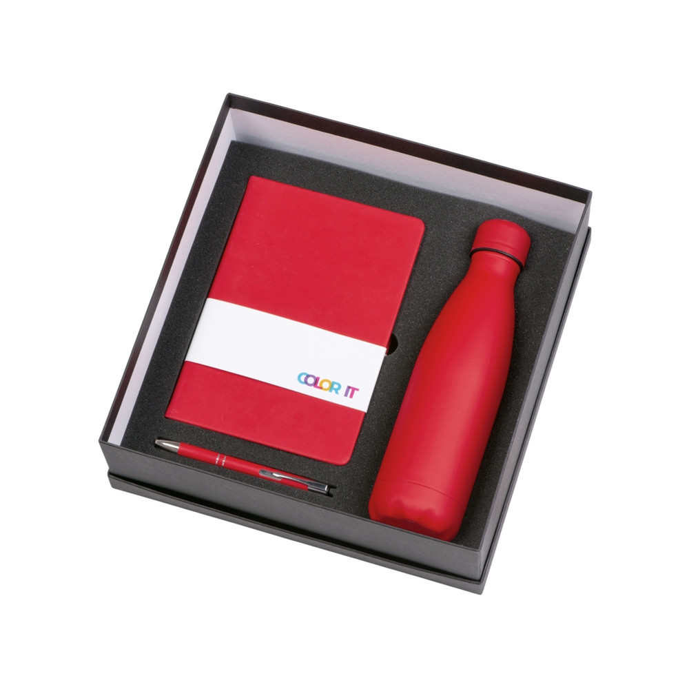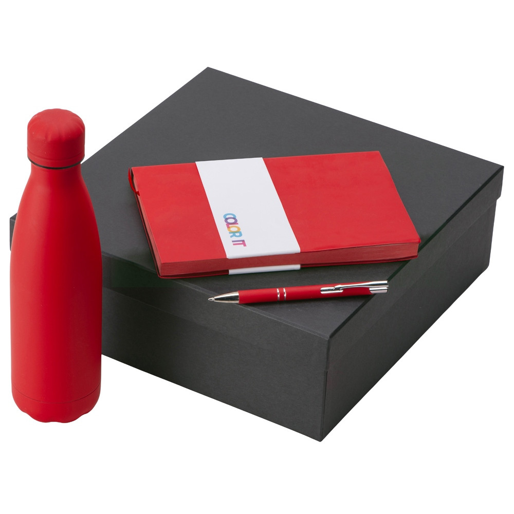 Подарочный набор с блокнотом С1, металлической ручкой и термобутылкой, красный
