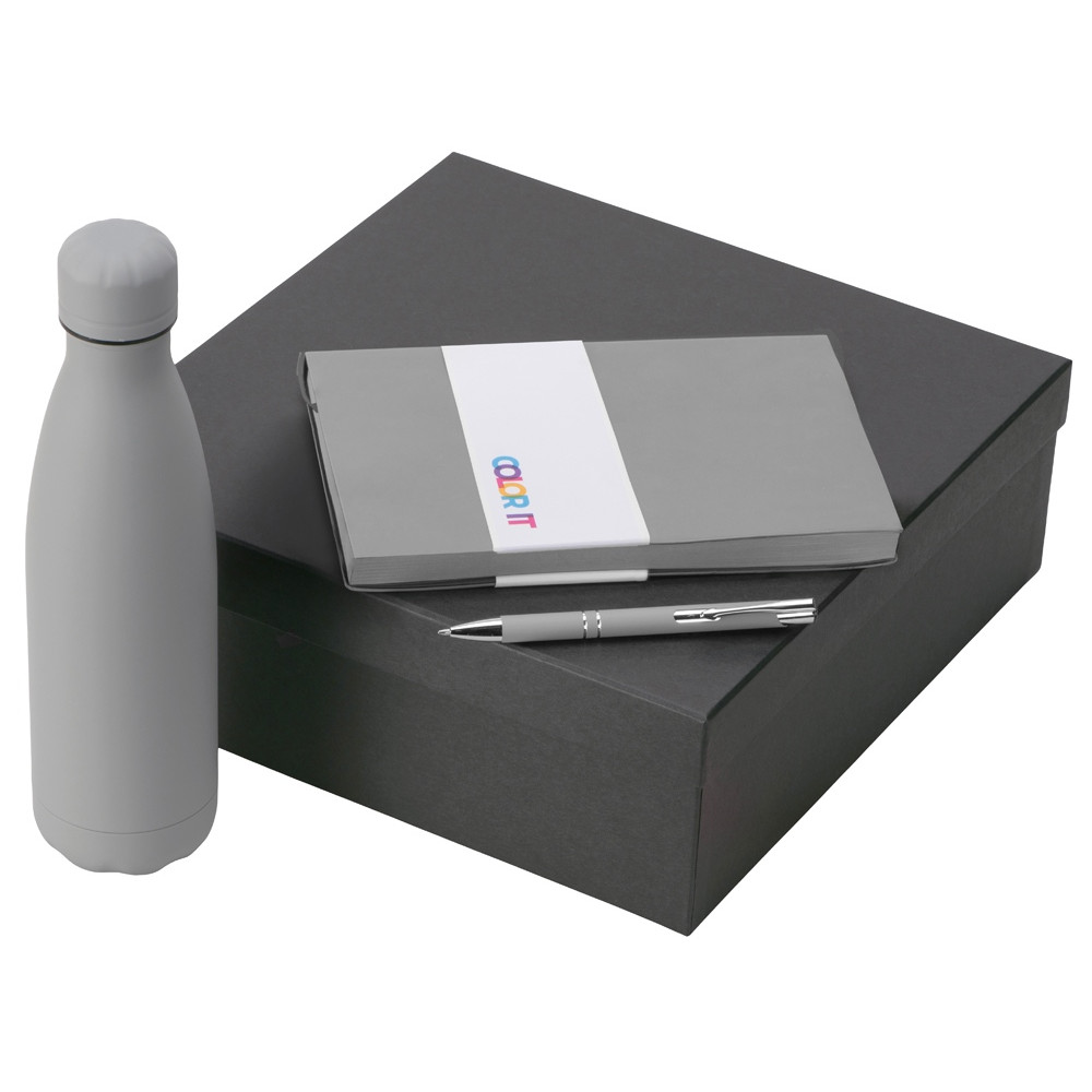 Подарочный набор с блокнотом С1, металлической ручкой и термобутылкой, серый