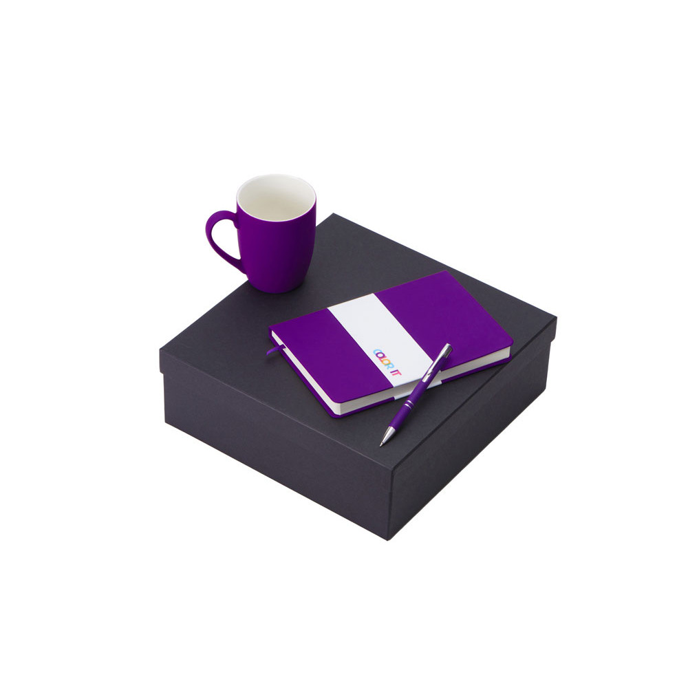 Подарочный набор с блокнотом С2, металлической ручкой и кружкой, фиолетовый
