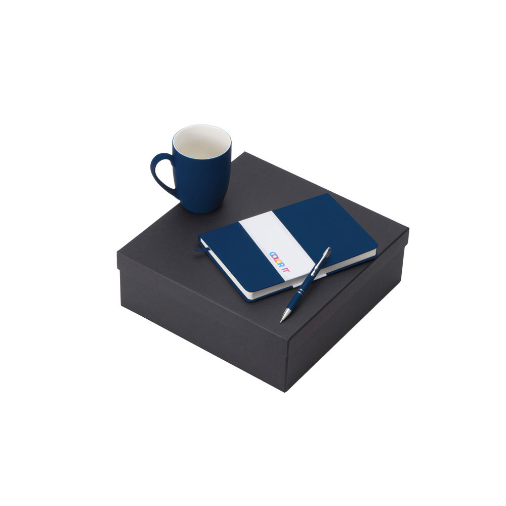 Подарочный набор с блокнотом С2, металлической ручкой и кружкой, темно-синий