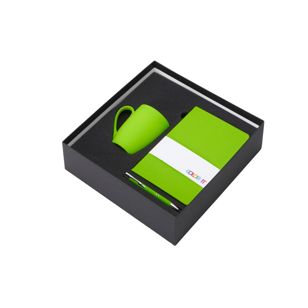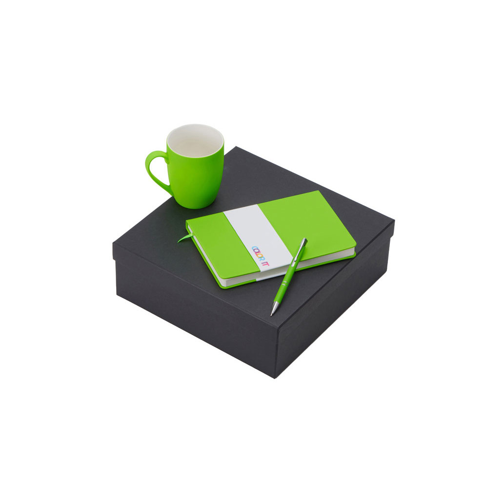 Подарочный набор с блокнотом С2, металлической ручкой и кружкой, зеленое яблоко
