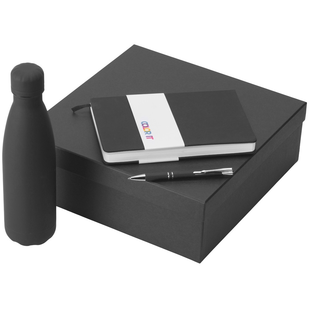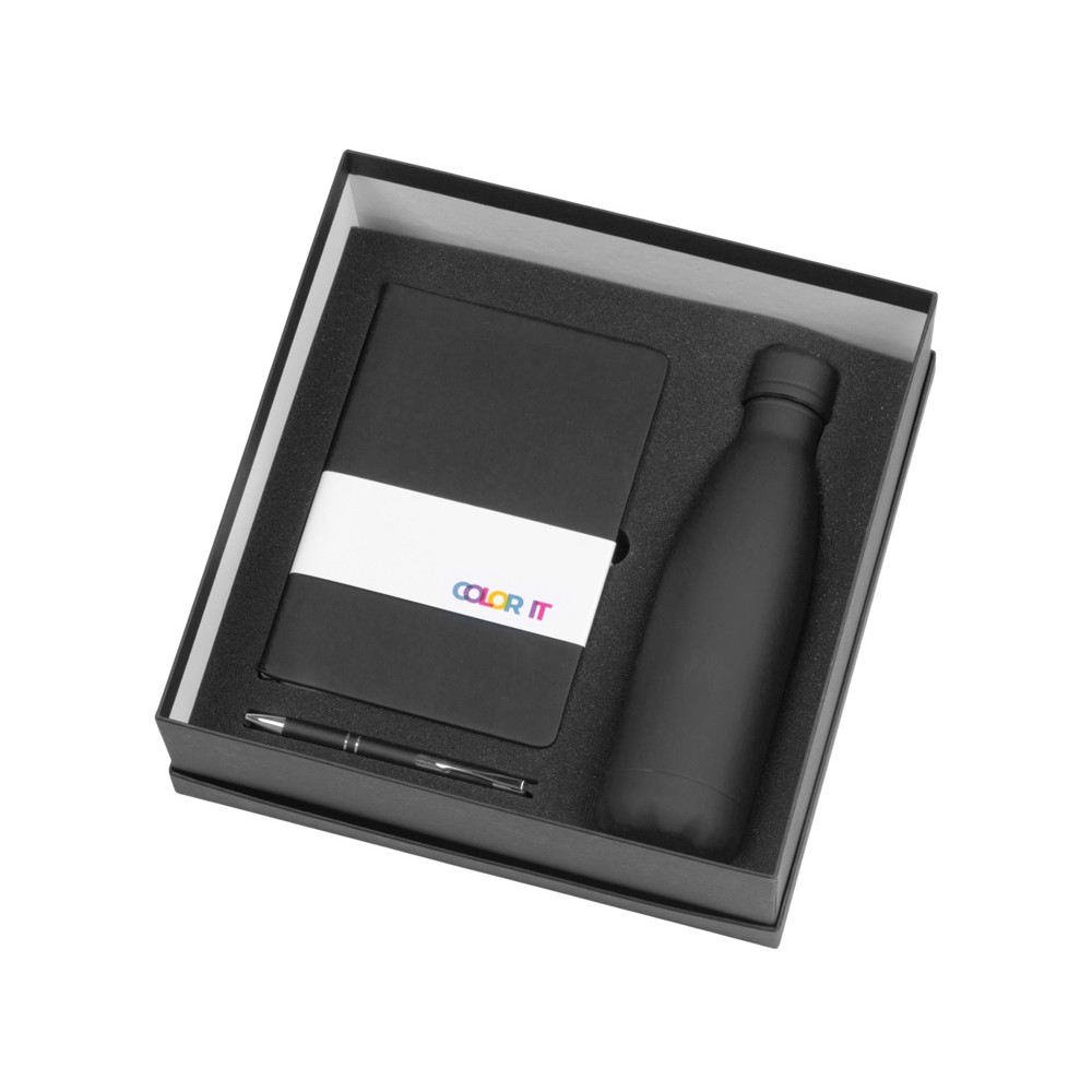 Подарочный набор с блокнотом С2, металлической ручкой и термобутылкой, черный