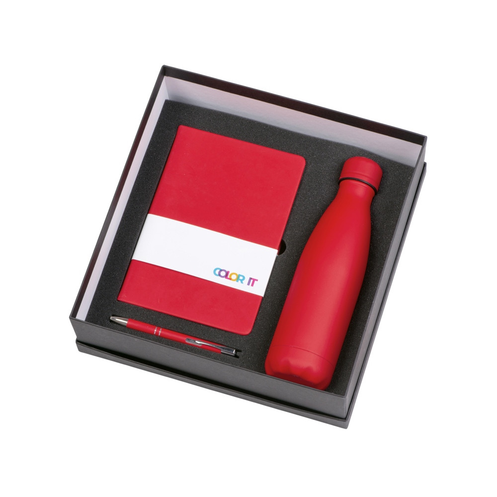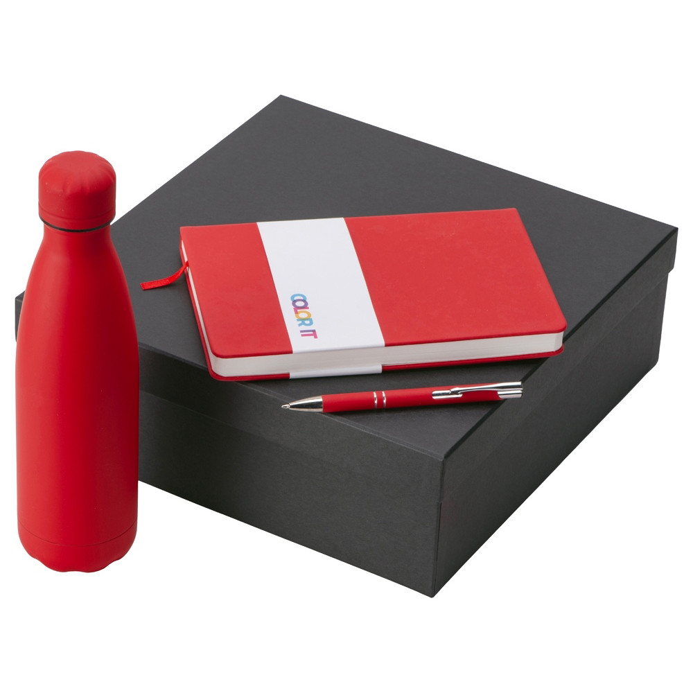 Подарочный набор с блокнотом С2, металлической ручкой и термобутылкой, красный