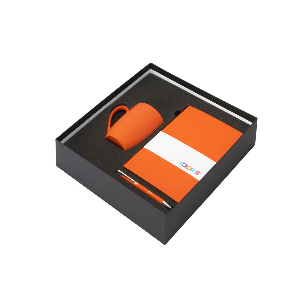 Подарочный набор с блокнотом С3, металлической ручкой и кружкой, оранжевый