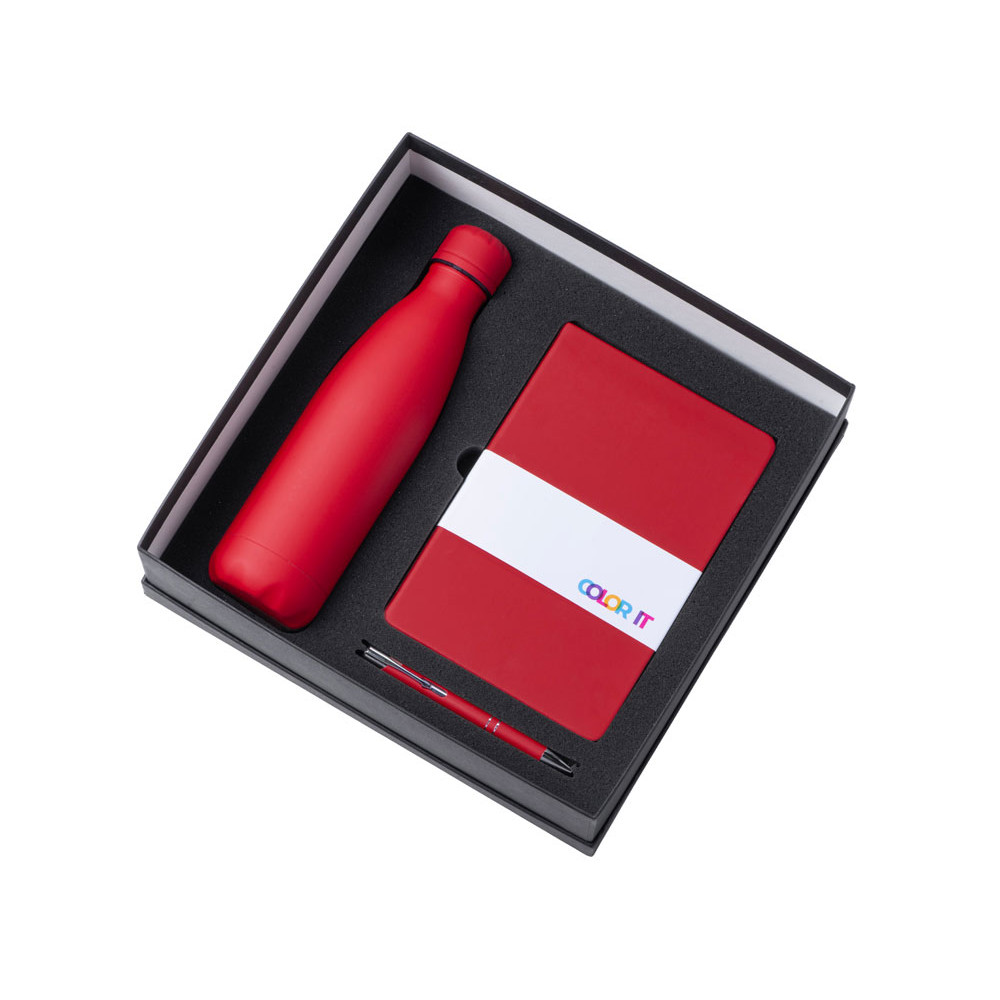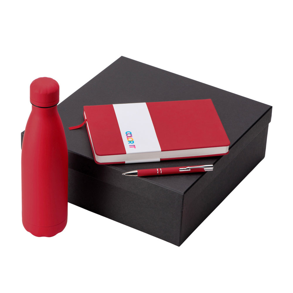 Подарочный набор с блокнотом С3, металлической ручкой и термобутылкой, красный