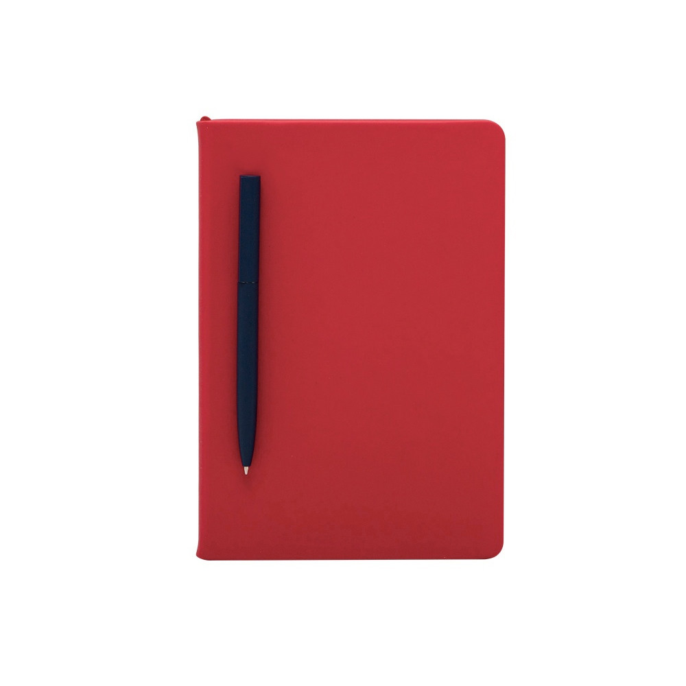 Бизнес-блокнот в твёрдой обложке с магнитным держателем для ручки имеет ляссе в тон обложки. Бумажный блок разлинован в линейку и выполнен из бумаги, полученной из древесины из специальных восполняемых лесных ресурсов, имеет сертификат FSC.