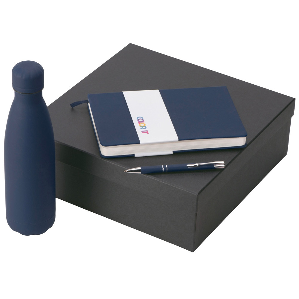 Подарочный набор с блокнотом С3, металлической ручкой и термобутылкой, темно-синий