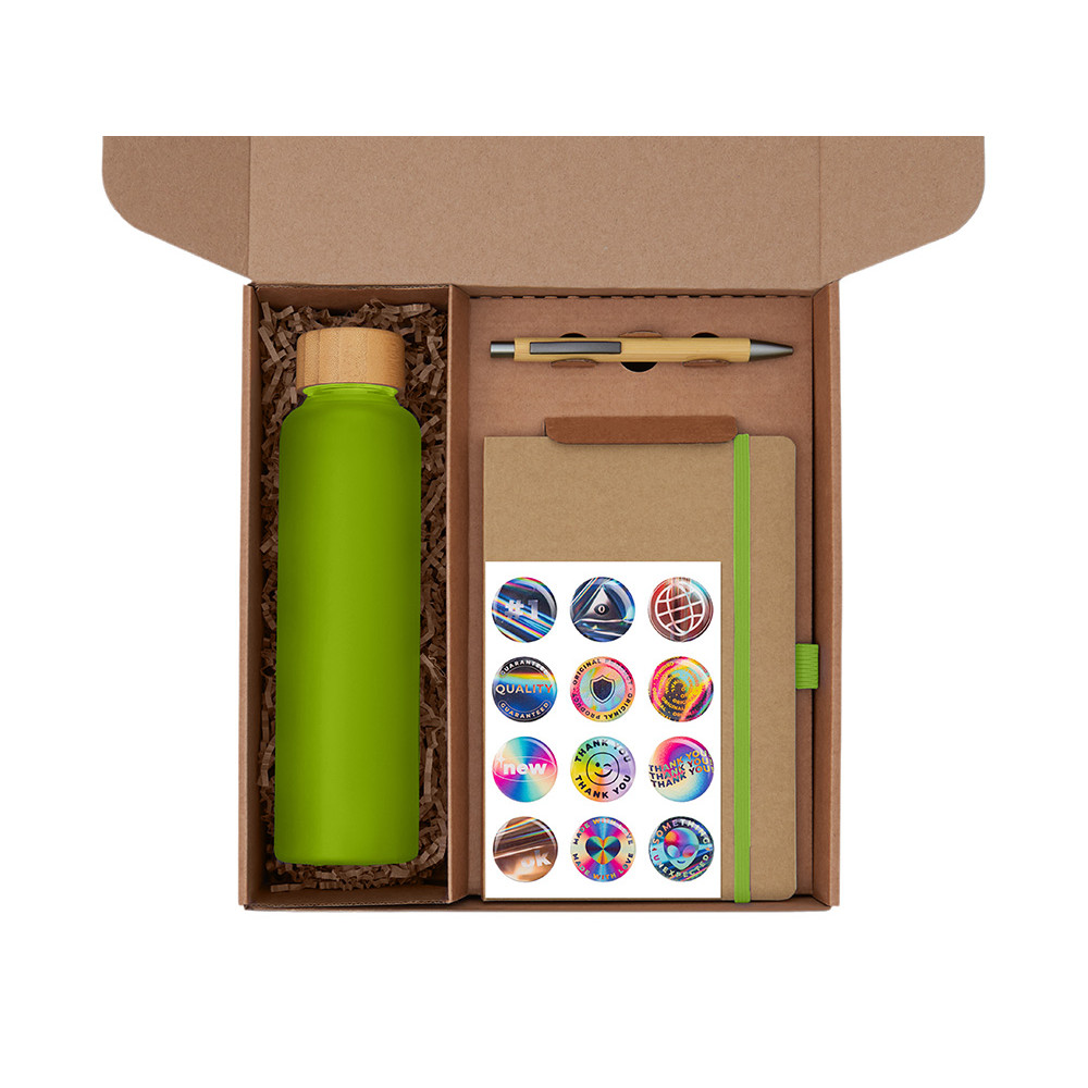 Подарочный набор с бутылкой для воды. блокнотом, ручкой и подставкой для телефона, зеленое яблоко