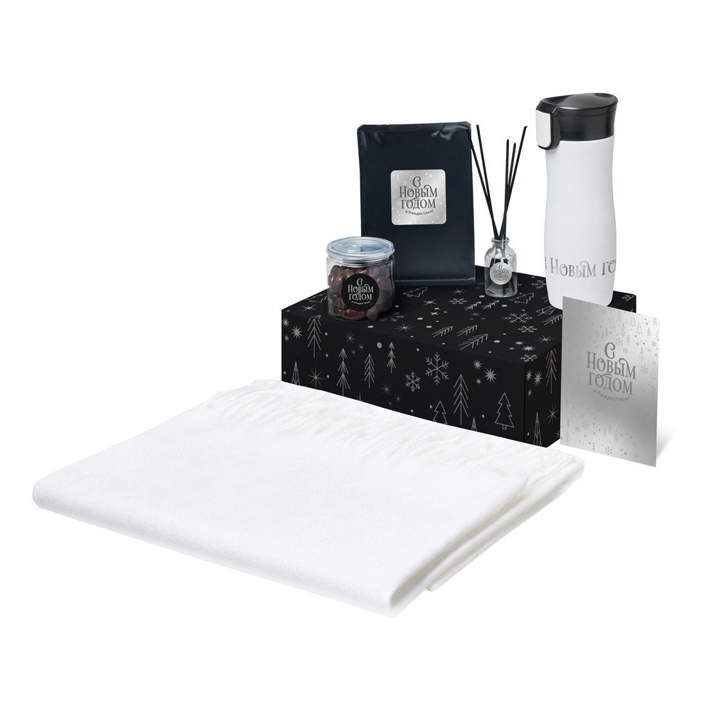 - Материал товара палантин - 100% полиэстер, термокружка - нержавеющая сталь, открытка - бумага, мешок - нетканый материал (спанбонд)