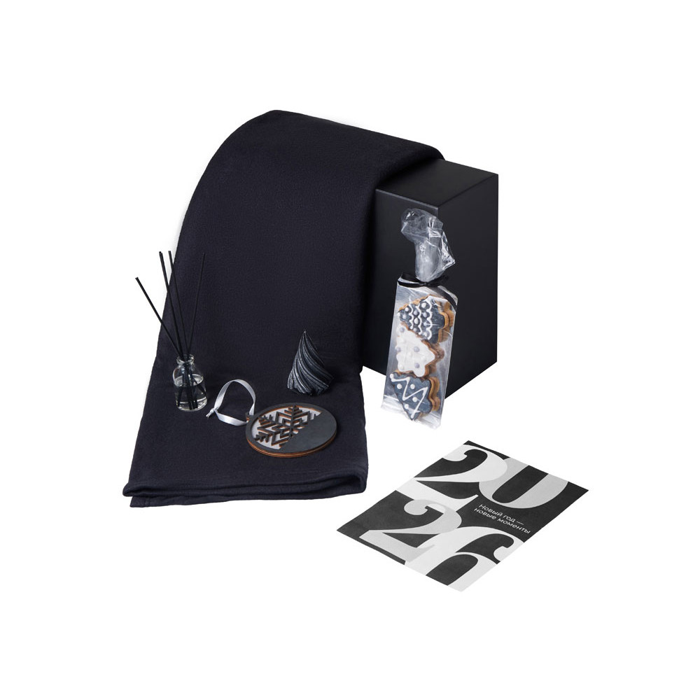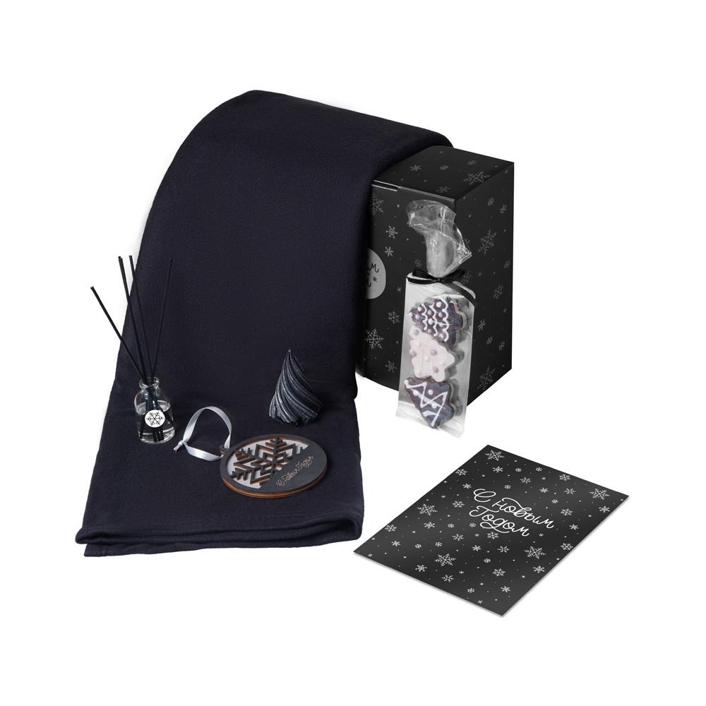 Подарочный набор с пледом, свечой и диффузором, черный