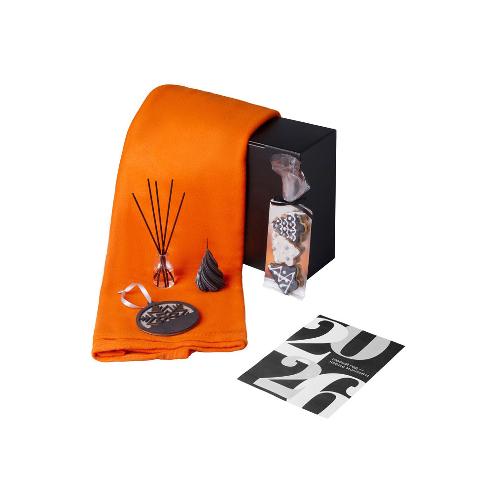Подарочный набор с пледом, свечой и диффузором, оранжевый