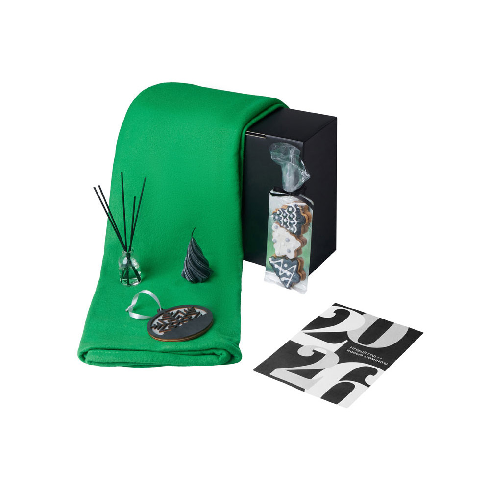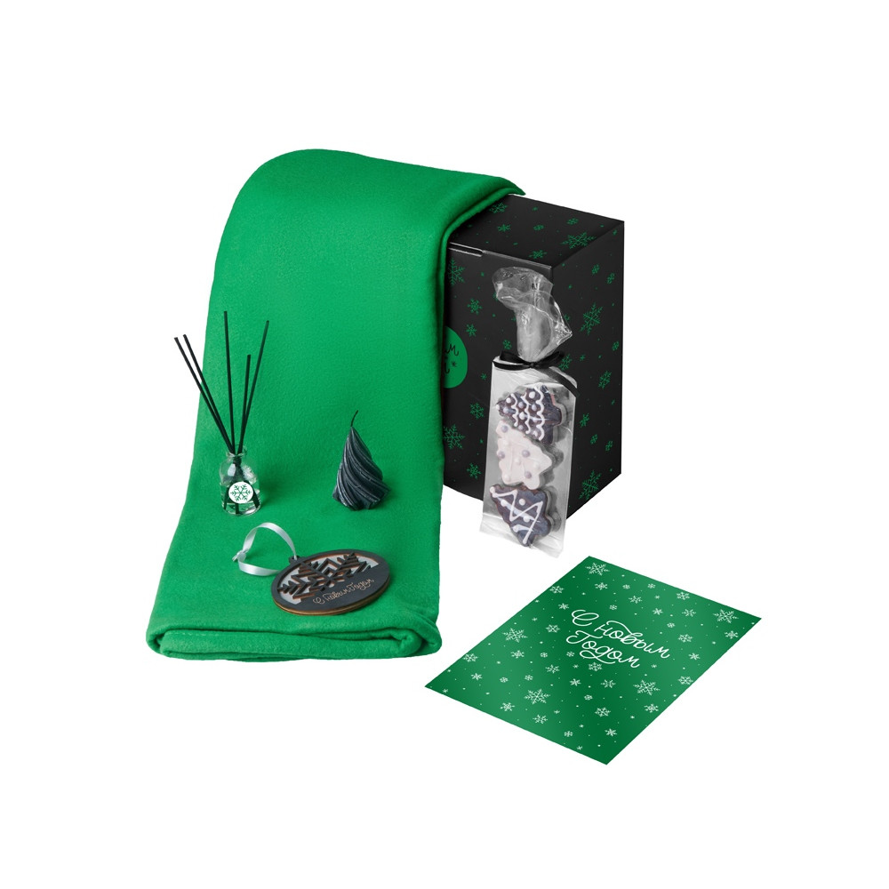 Подарочный набор с пледом, свечой и диффузором, зеленый