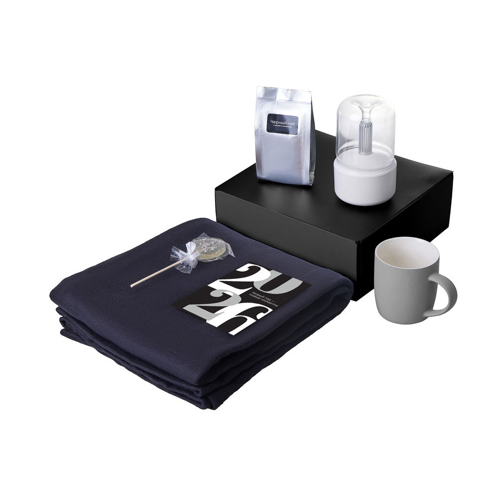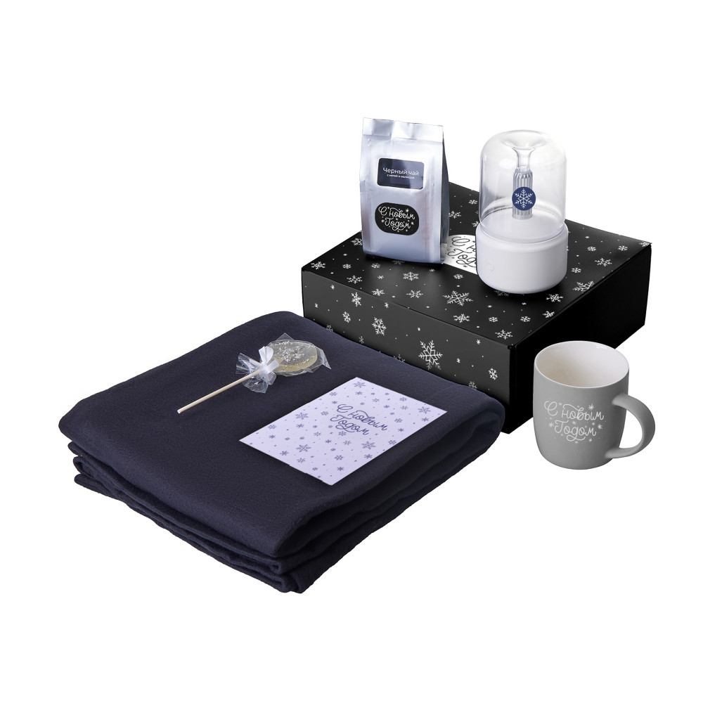 Подарочный набор с пледом, увлажнителем и кружкой, серый