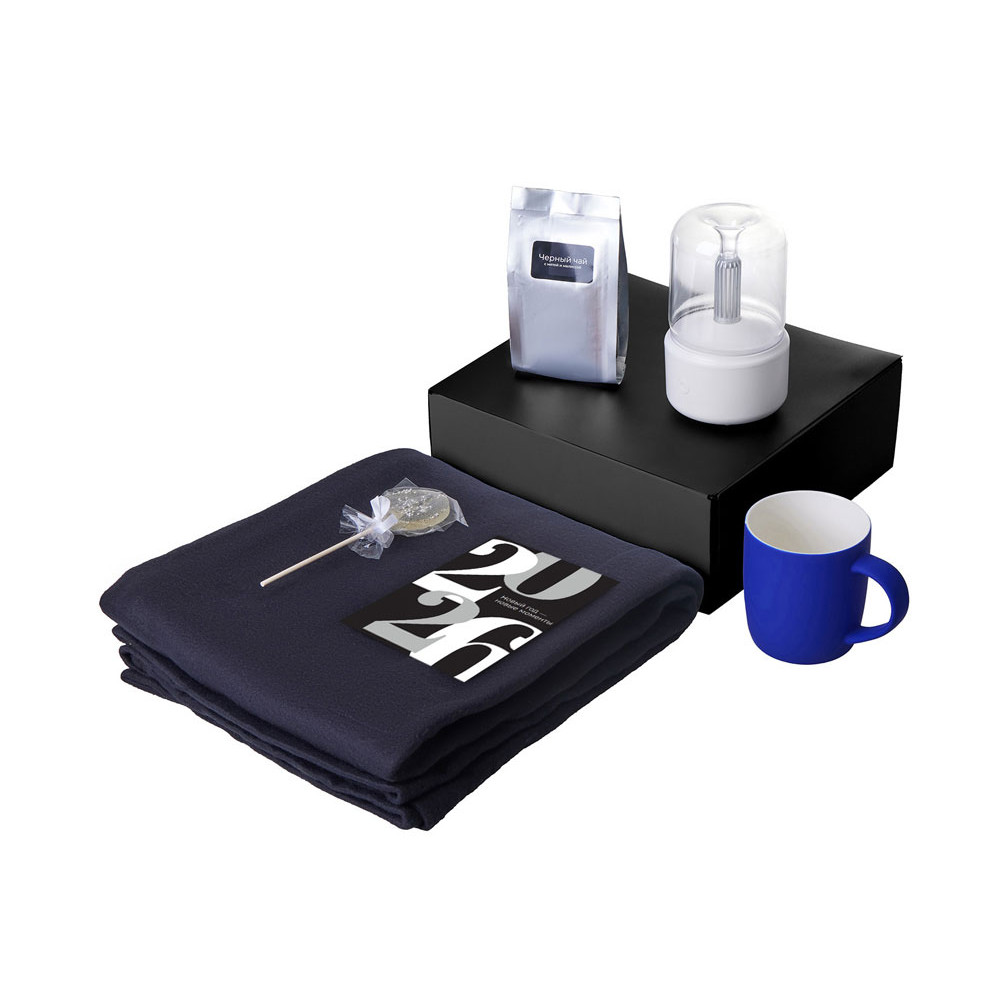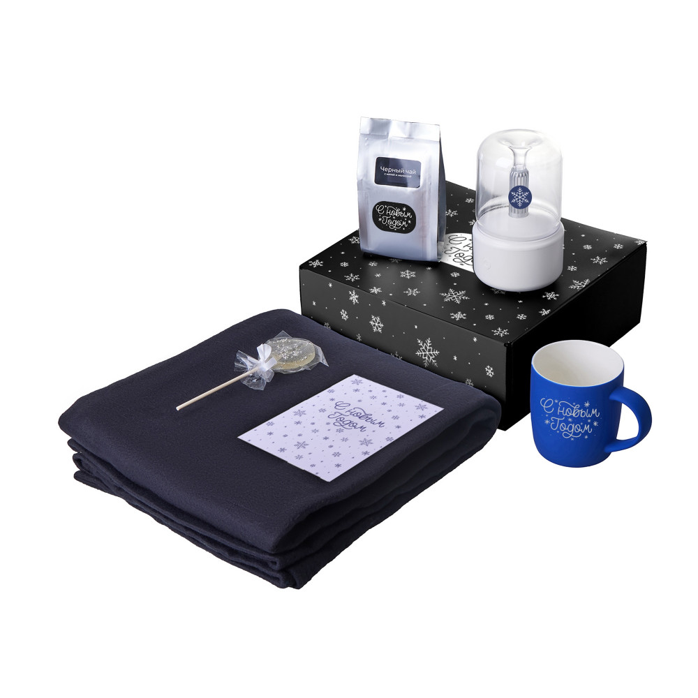 Подарочный набор с пледом, увлажнителем и кружкой, синий