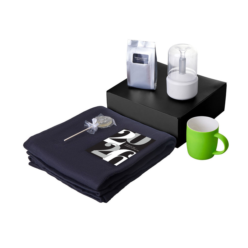 Подарочный набор с пледом, увлажнителем и кружкой, зеленое яблоко