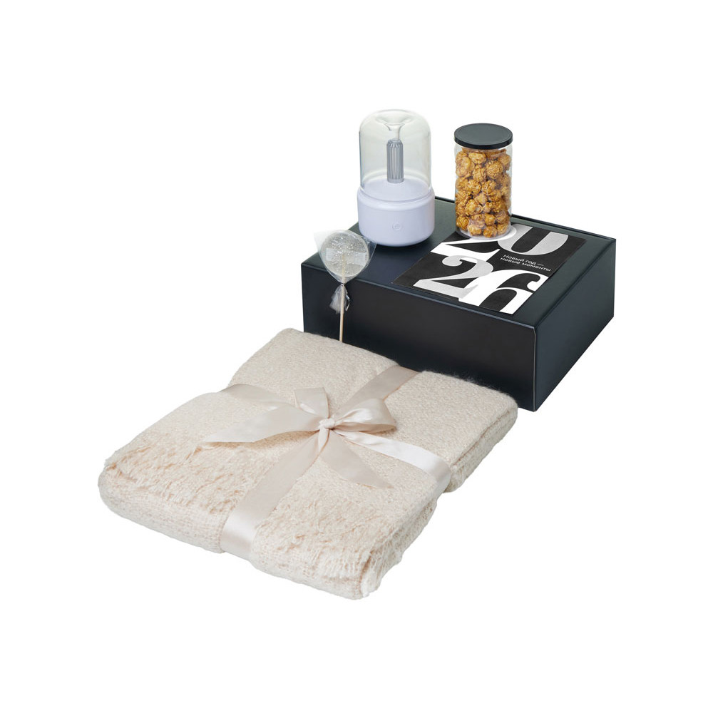 Подарочный набор с пледом, увлажнителем и попкорном, бежевый