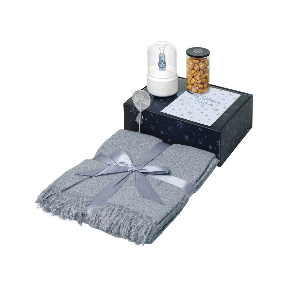 Подарочный набор с пледом, увлажнителем и попкорном, серый