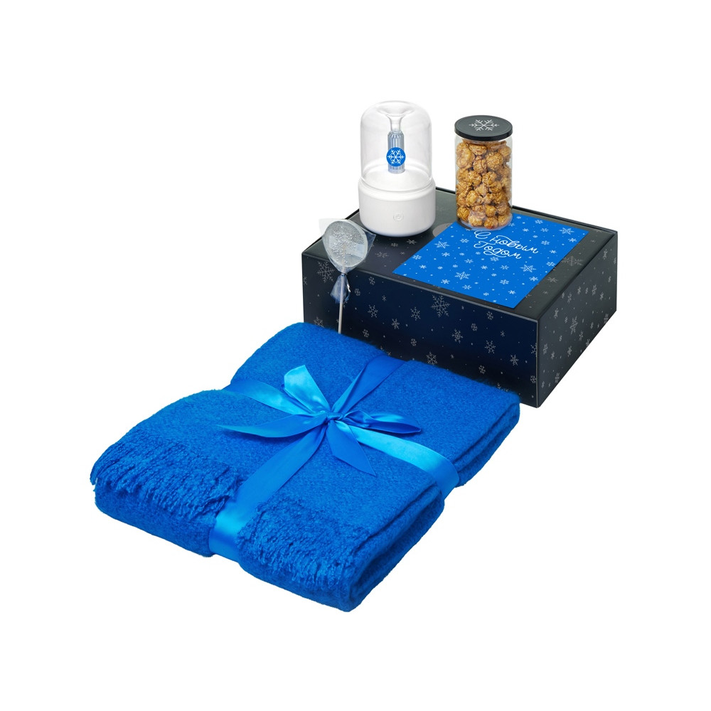 Подарочный набор с пледом, увлажнителем и попкорном, синий