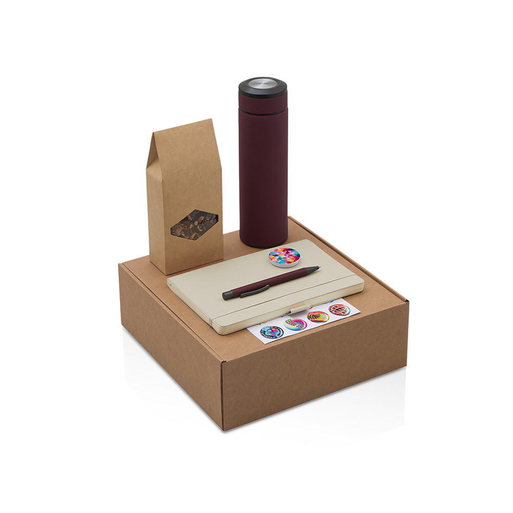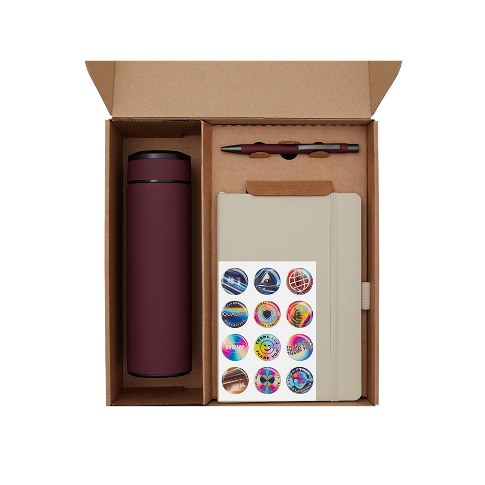 Подарочный набор с термосом, блокнотом, ручкой и чаем, бордовый
