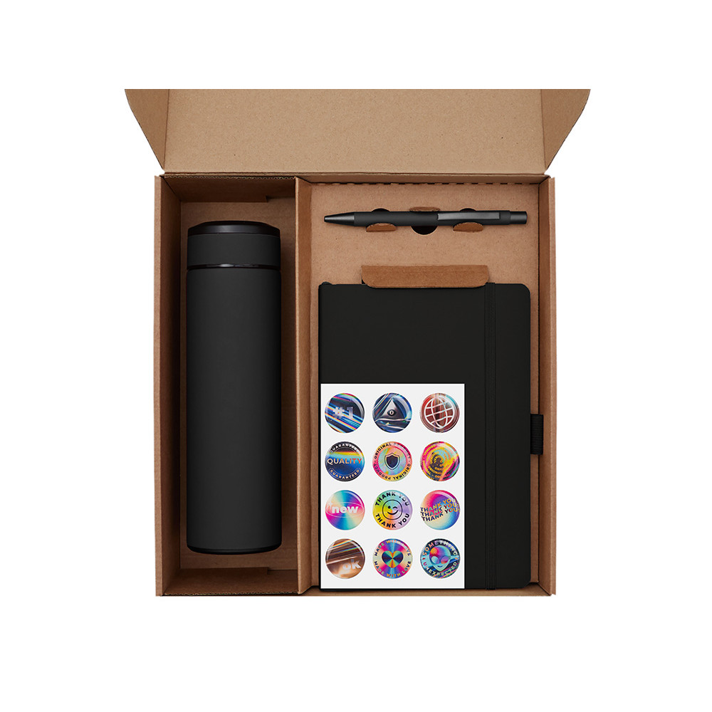 Подарочный набор с термосом, блокнотом, ручкой и чаем, черный