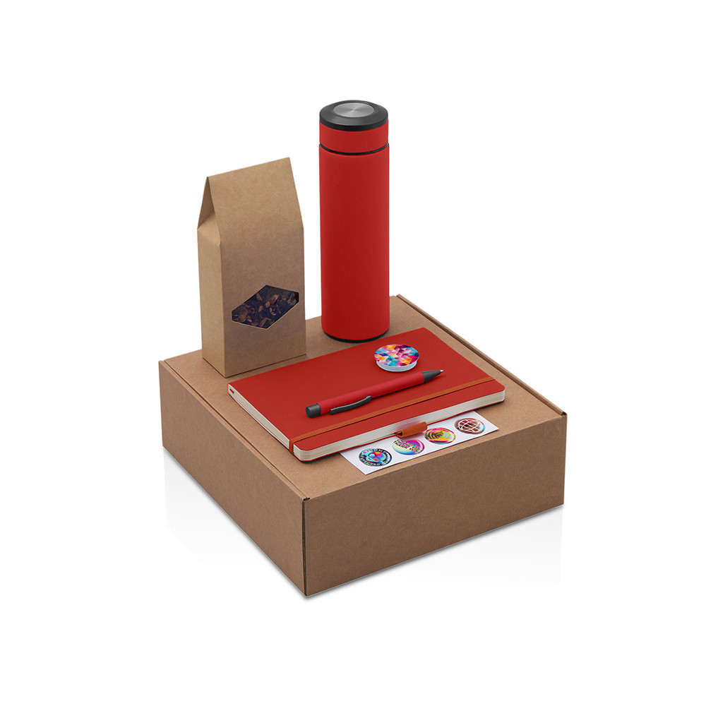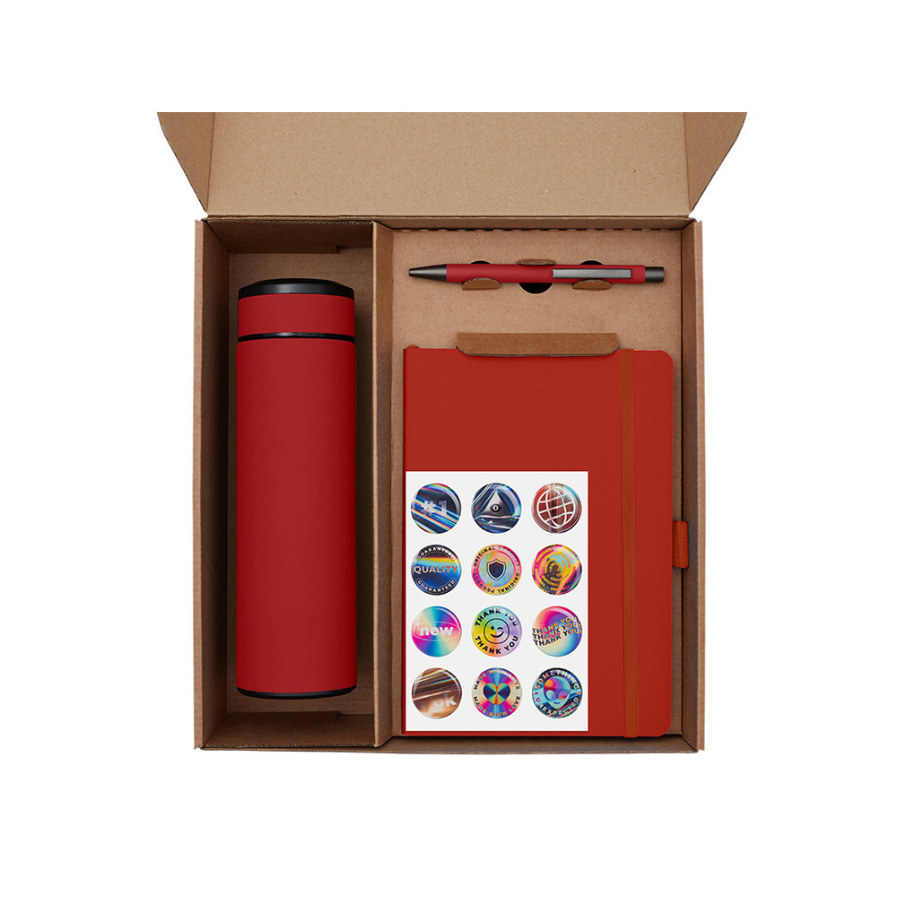 Подарочный набор с термосом, блокнотом, ручкой и чаем, красный