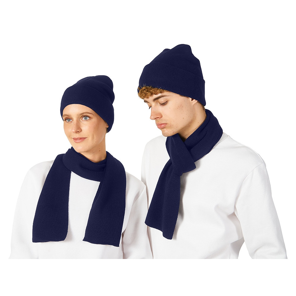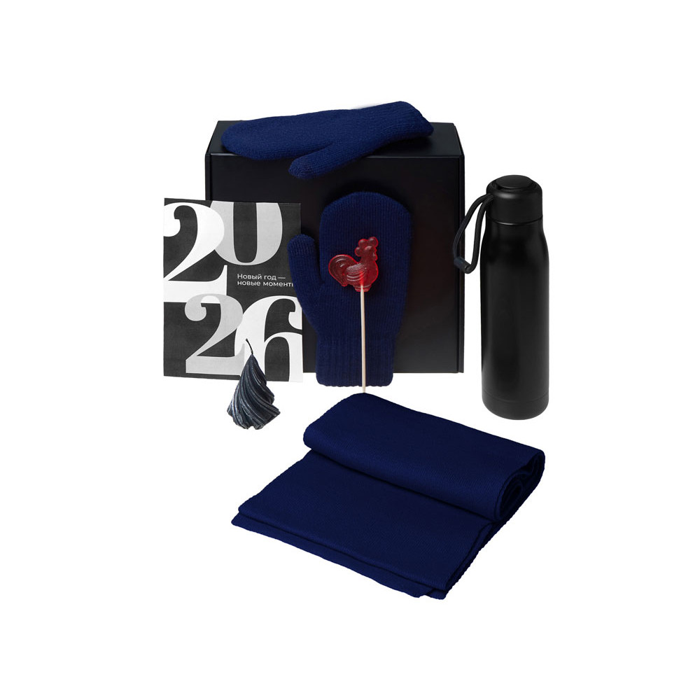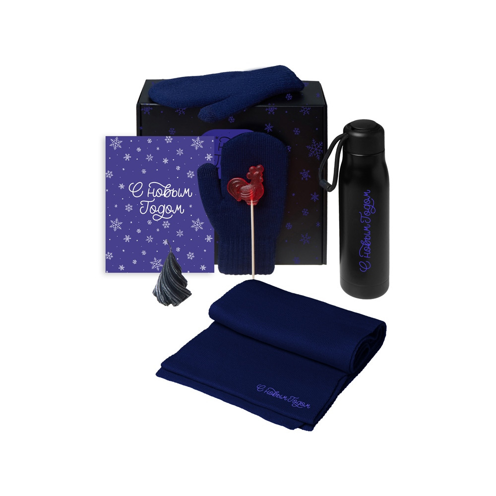 Подарочный набор с варежками, шарфом и термосом, темно-синий
