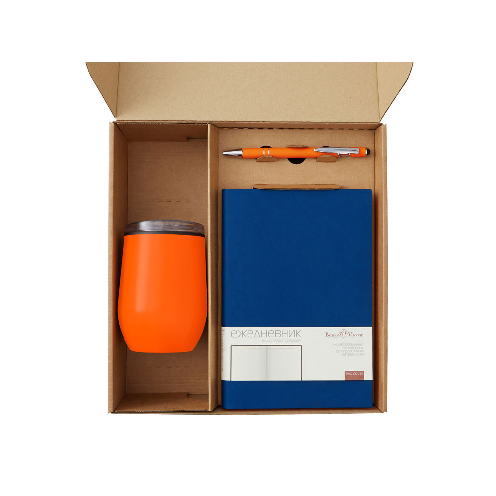 - Материал товара ежедневник - искусственная кожа, термокружка - нержавеющая сталь снаружи, полипропилен внутри, ручка - металл c покрытием soft-touch, ситечко - нержавеющая cталь