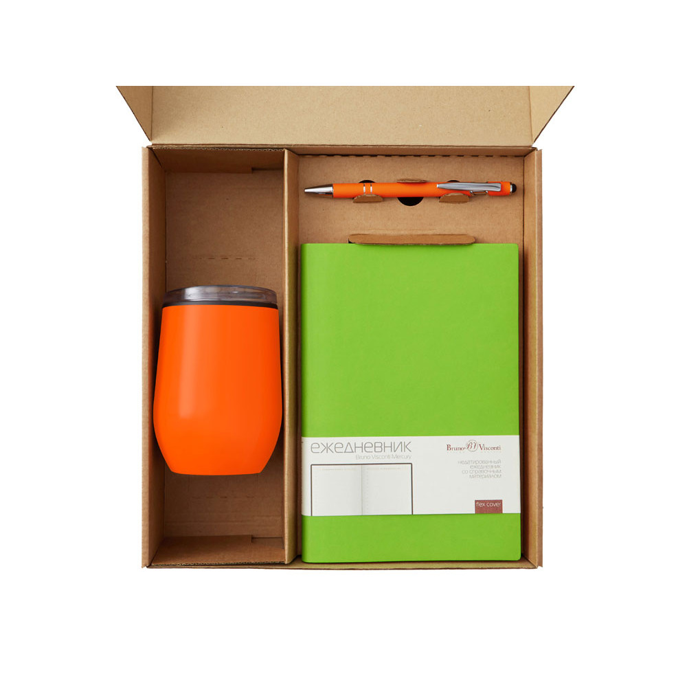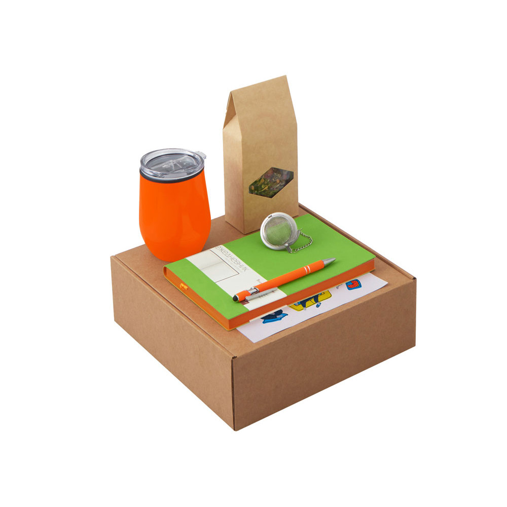 - Материал товара ежедневник - искусственная кожа, термокружка - нержавеющая сталь снаружи, полипропилен внутри, ручка - металл c покрытием soft-touch, ситечко - нержавеющая cталь