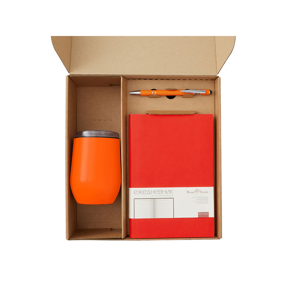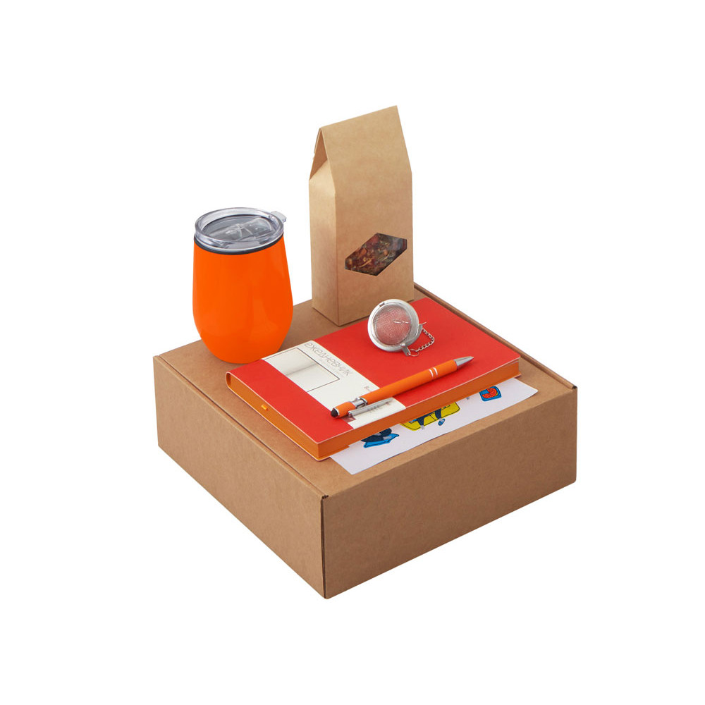 - Материал товара ежедневник - искусственная кожа, термокружка - нержавеющая сталь снаружи, полипропилен внутри, ручка - металл c покрытием soft-touch, ситечко - нержавеющая cталь