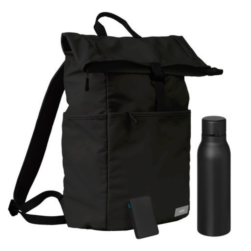 Подарочный набор Бостон (Boston), черный (термобутылка, ЗУ, рюкзак)