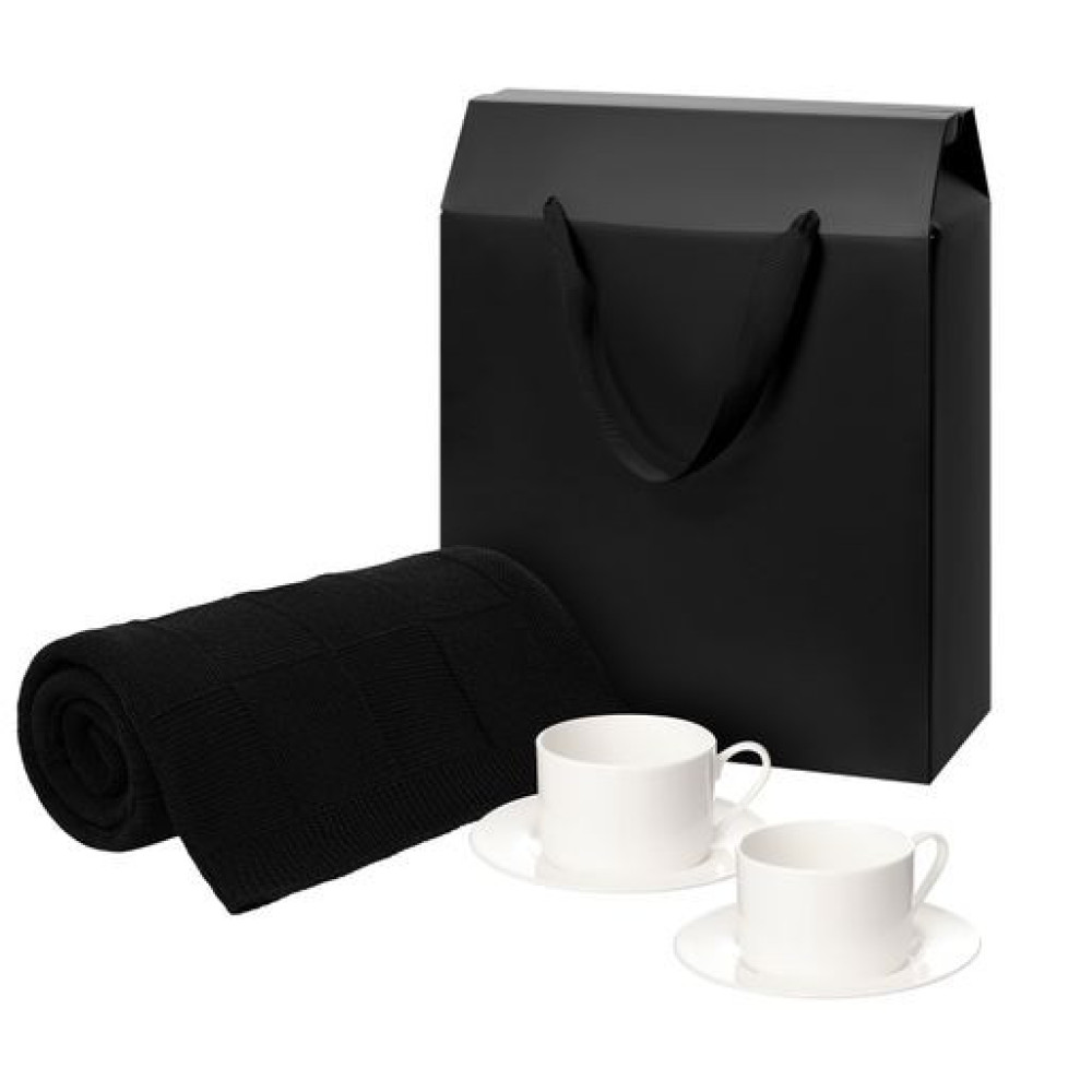 Подарочный набор Мокко (Mokko), Селла (Сella), черный в коробке-пакете (две чайных пары, плед)