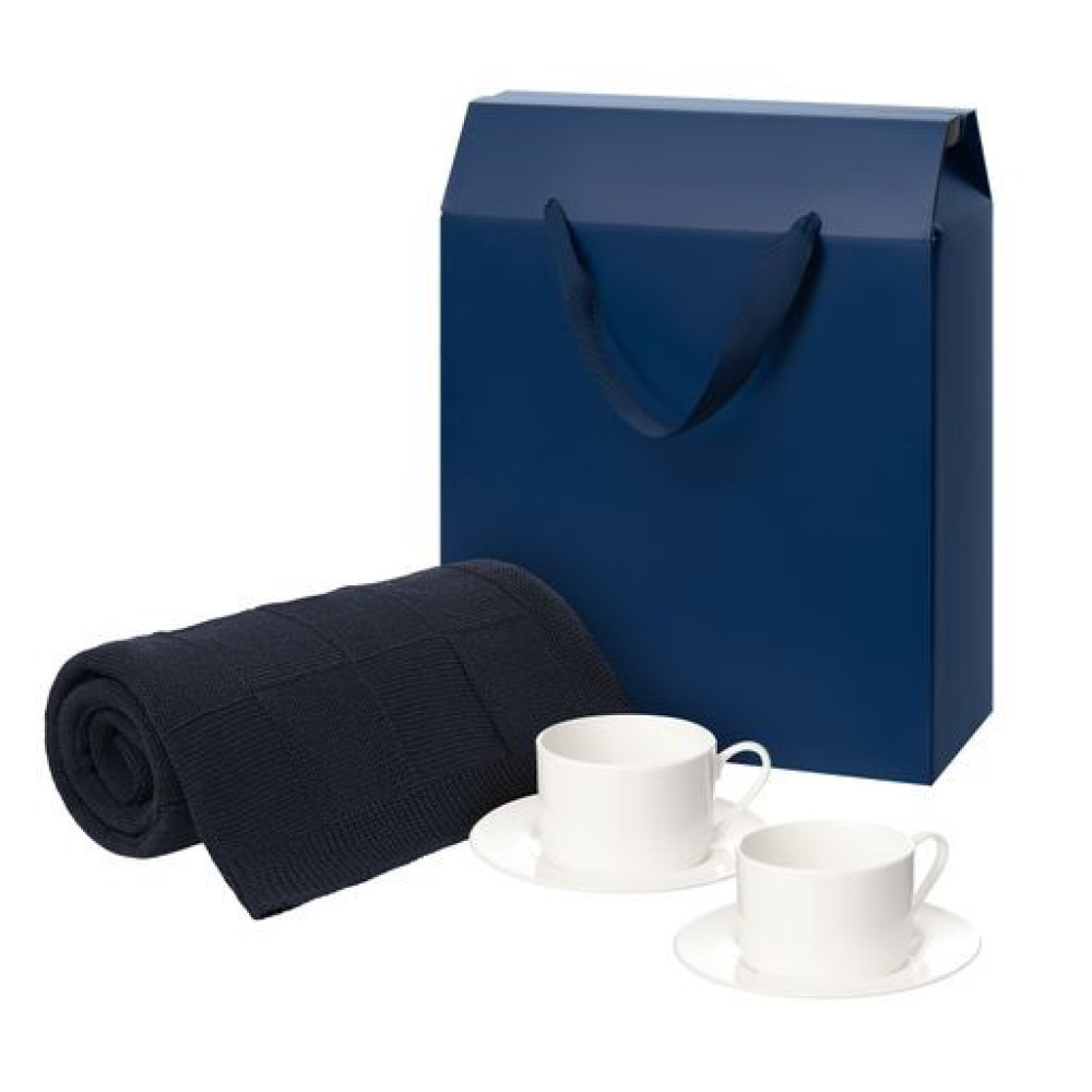 Подарочный набор Мокко (Mokko), Селла (Сella), синий в коробке-пакете (две чайных пары, плед)